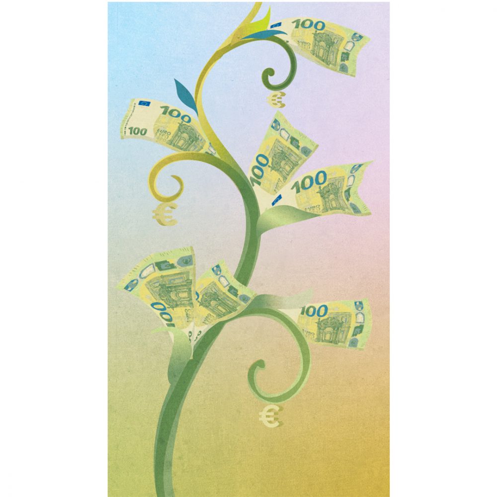 Placements Une série d’illustrations pour le cahier spécial placements « Nos bons plans pour 2020 ». Ok, ce n’est pas un sujet farouchement sexy, mais on peut toujours proposer un peu de légèreté. L’Express du 19 au 25 mars 2020